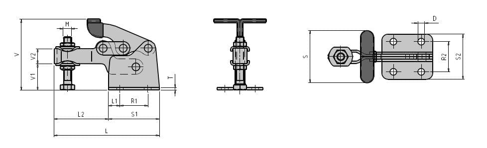 L1=14,5mm L2=68mm L=132mm V1=33mm V2=19mm V=90mm S1=64mm S2=57mm R1=35mm R2=38mm D=8,5mm T=3mm M=10mm