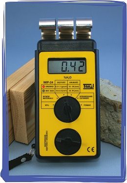 | Wilgotnościomierz WIP-24 przeznaczony jest do szybkiego, nieniszczacego (bezinwazyjnego) pomiaru wilgotności drewna i materiałów budowlanych. Umożliwia pomiar praktycznie wszystkich gatunków drewna (także egzotycznych) oraz miedzy innymi takich materiałów budowlanych jak: beton, cegła, tynk, jastrych i gips. Wartości gestości najpopularniejszych gatunków drewna i najczęściej spotykanych materiałów budowlanych umieszczone są na tylnej ściance przyrządu. W związku z tym wybór gatunku drewna lub rodzaju materiału budowlanego jest bardzo łatwy i szybki. Obsługa przyrządu jest prosta i bardzo przyjazna użytkownikowi. |